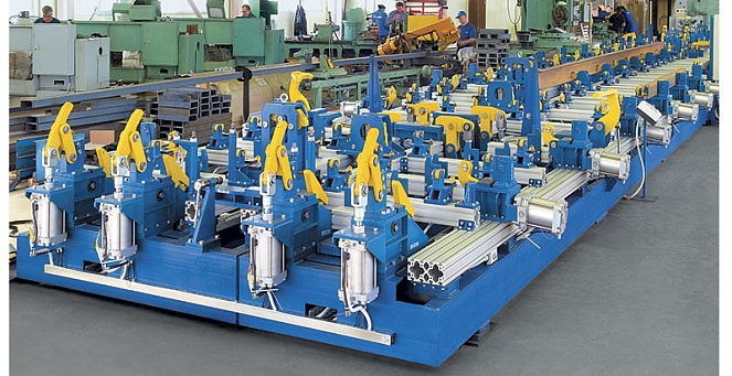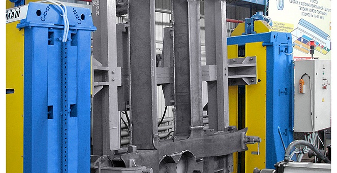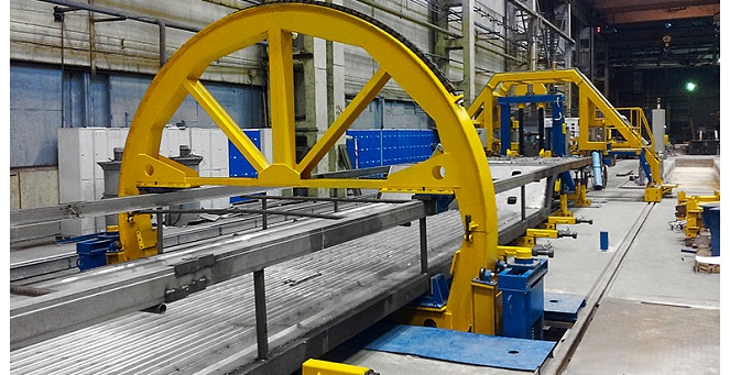 Зварювальні операції здійснюються за допомогою незалежних рухомих порталів, які також переміщуються рейковими напрямними вздовж рами вагона. Портали оснащені спеціалізованими пневматичними притисками, відповідними пультами керування, а також сходами для робітників.
